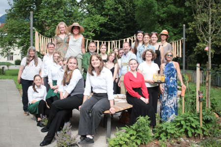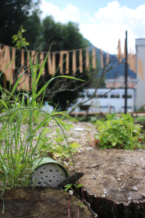 |   Anfang April 2024 fand ein Frühlingsworkshop statt, im Rahmen dessen die teilnehmenden Schülerinnen verschiedenste Elemente für den Garten bauten. Unter Anleitung des Steinmetz Günter Brucker entstand eine horizontale Sonnenuhr unter Verwendung von Findlingen aus dem Kaltenbach. Eine Gruppe gestaltete gemeinsam mit der Lehrerin Sophie Jaros Insektenhotels und eine andere mit dem Künstler und Gartenexperten Julian Karacsonyi zwei Hochbeete und einen Gartenschuppen. Eine weitere Gruppe versorgte alle Teilnehmende mit köstlichen Stärkungen. Nach dreijähriger Vorbereitungszeit wurde am 27. Juni 2024 der "Garten der Zeitläufe" offiziell eröffnet. Nach der Eröffnungszeremonie gab es Infostationen bei bestimmten Elementen im Garten, bei denen man mehr über den Prozess des jeweiligen Gartenelemente erfahren konnte. Darunter gab es eine Sonnenuhr-Station, eine Wilde Zone-Station, eine Ausstellung in der Gartenhütte und vieles mehr. Mit Musik von der Band GiZiKoGla und Andaka und einem Buffet aus dem Schulrestaurant ist die Eröffnung feierlich abgerundet worden. Und es wurde viel getanzt :) An der Eröffnungsfeier