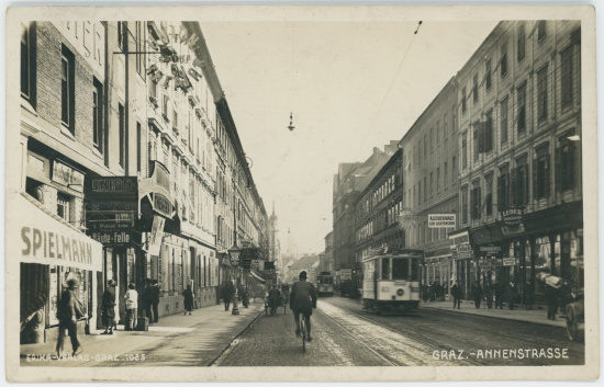 With the connection to the railway network in the mid-19th century, a new boulevard and shopping street was created from the centre of Graz to the railway station – Annenstrasse. Consequently, numerous Jewish merchants settled here, which had been confronted with the most virulent anti-Semitism within a very short time.
